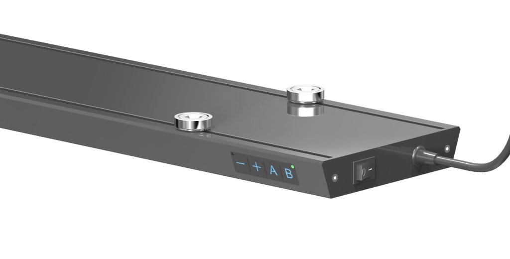 Anodized all-aluminum body with multifunctional longitudinal grooves. Power supply 230V / 50Hz, power consumption 58W, mechanical switch, LG Innotek LEDs, light color 4000 K, capacitive button control. Width 1000 x height 26 x depth 136 mm, weight 2.4 kg.