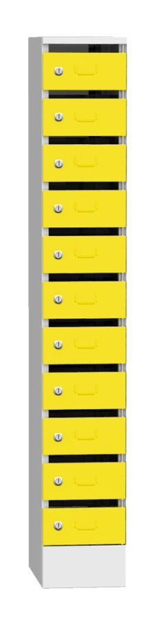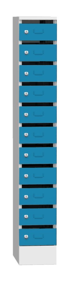 The cabinet is intended for sorting mail, documents or other valuables. Separately lockable boxes for cyl. lock or padlock closure. Height 1950 x width 600 x depth 500mm, 22 compartments with drop-in. Body color light gray RAL 7035.