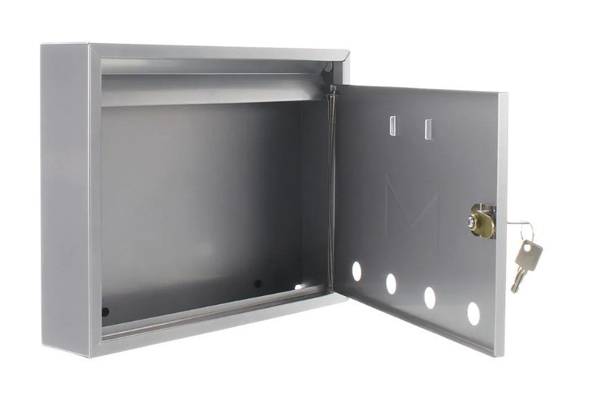 Quality letter box at an excellent price, top throw under the lid (dimensions 300 x 30 mm) + newspaper tube. Height 380 x width 370 x depth 120 mm. Black body, stainless steel door, 2x key.