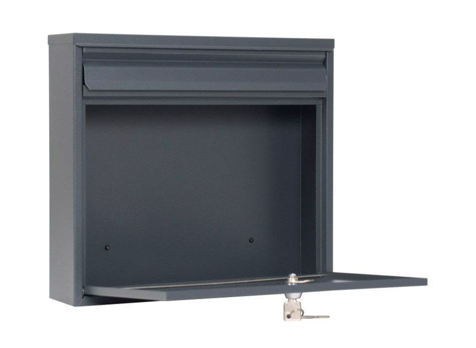Large mailbox for indoor use in anthracite color, front opening. Height 320 x width 360 x depth 85 mm.