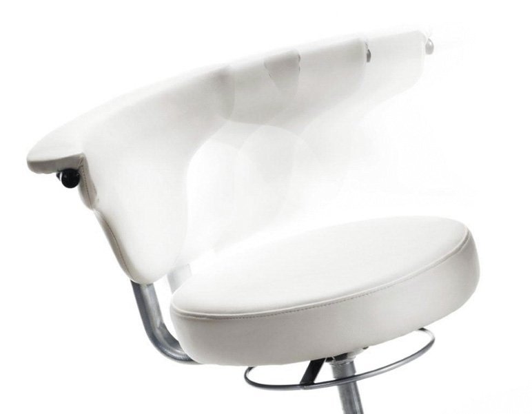 High swivel work chair with leg rest, with a swivel rest around the seat for back and hand support. Silver pearl frame, polished full description and parameters