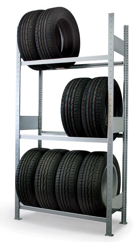 Clip extension tire rack, height 2500 x width 1000 x depth 400 mm, 4 shelves, shelf load capacity 150 kg, galvanized finish. It is used to set up the base rack type 97896 or 97898 - it does not stand alone, it has only one side.