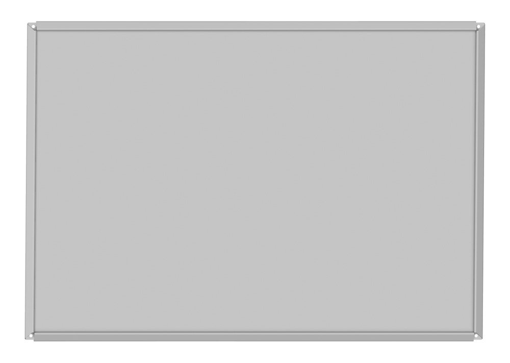 Hanging metal wall, color silver RAL 9006. Height 866 x width 1214 x depth 9 mm. Weight 9.5 kg.