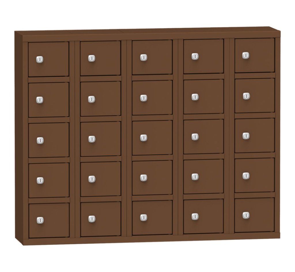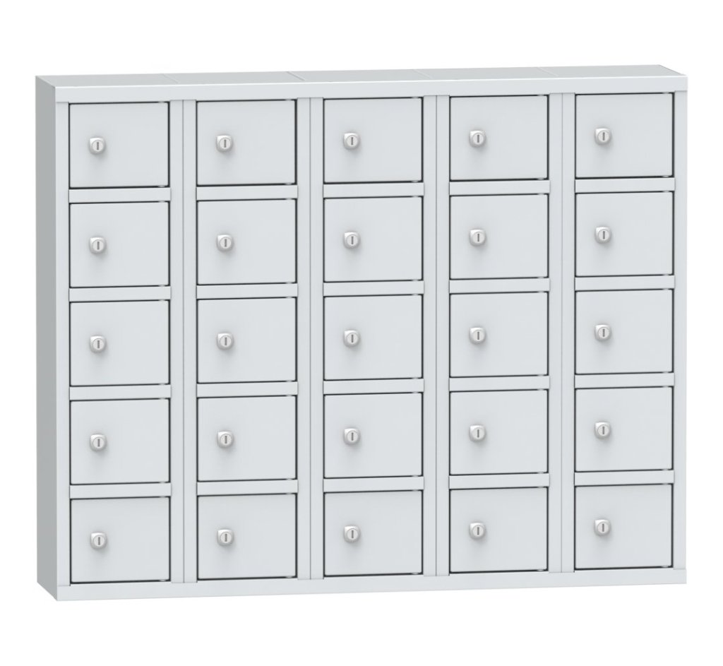 The metal cabinet with boxes is intended for storing personal belongings and small valuables. Dimensions h. 780 x w. 975 x d. 200 mm, 25 divisions.