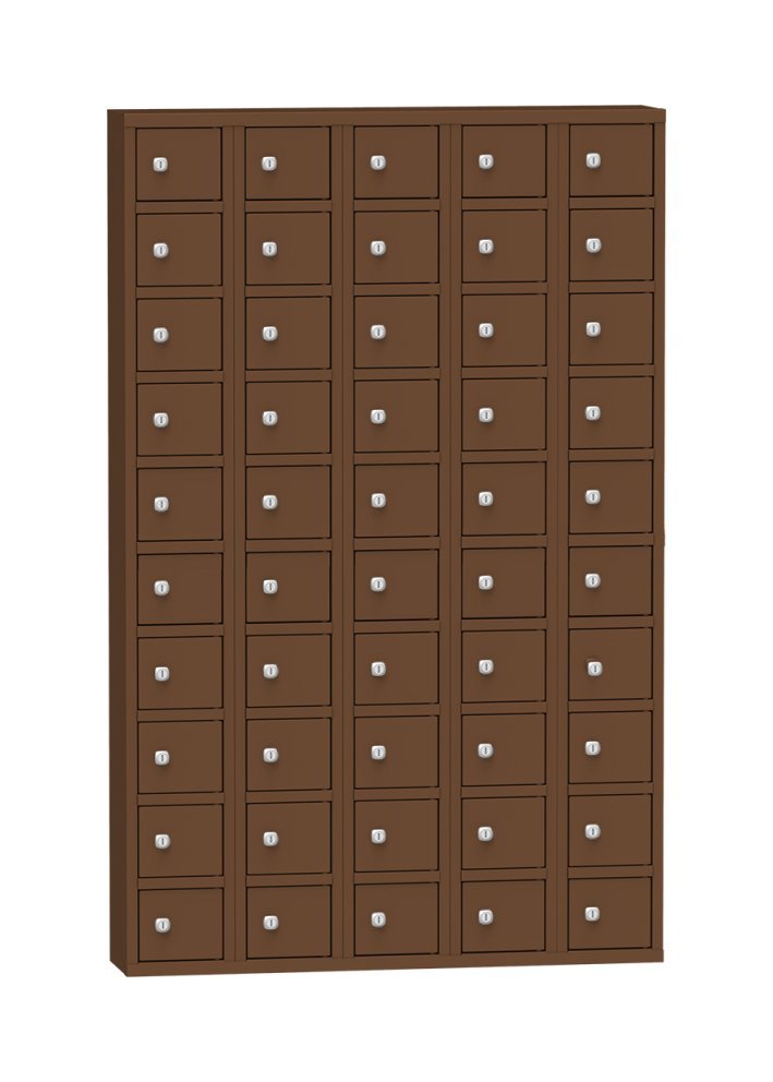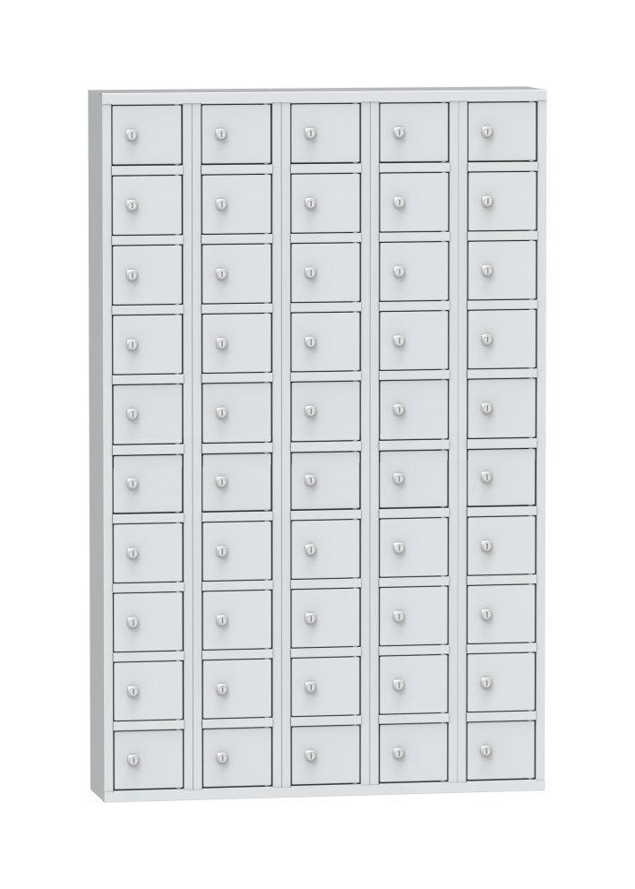 The metal cabinet with boxes is intended for storing personal belongings and small valuables. Dimensions h. 1530 x w. 975 x d. 200 mm, 50 divisions.