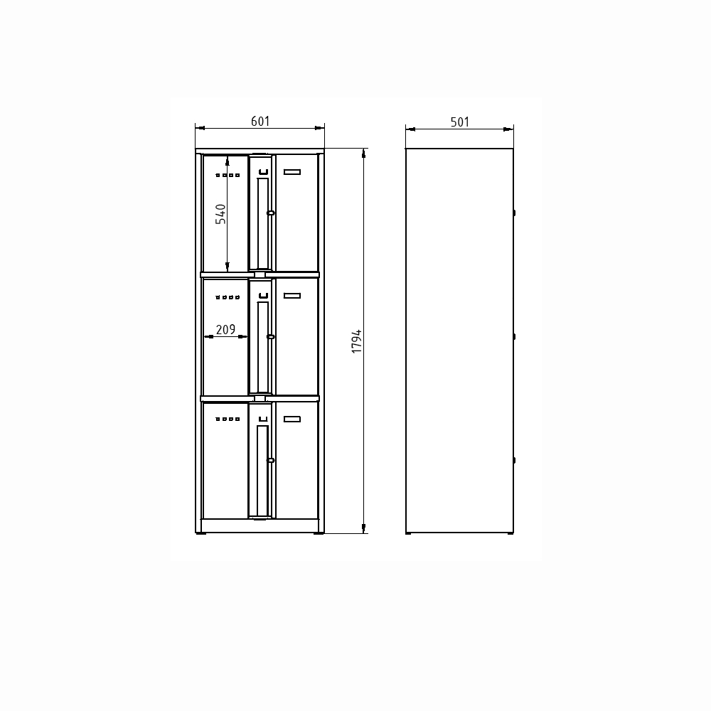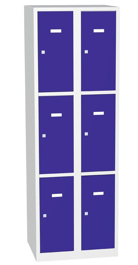 Metal cabinet with lockable boxes, height 1800 x width 600 x depth 500 mm. Key locking or padlock closure. Body color RAL 7035 full description and parameters