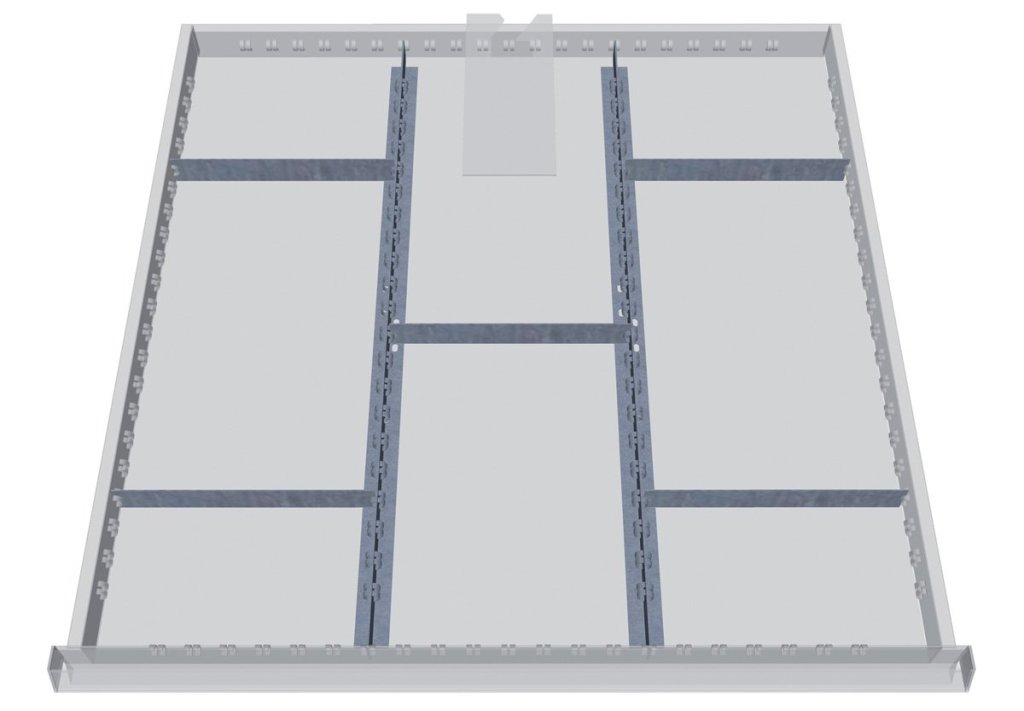 Metal division into drawers 150 mm high. Only suitable for Bedrunka+Hirth drawer cabinets with a width of 705 and a depth of 736 mm.