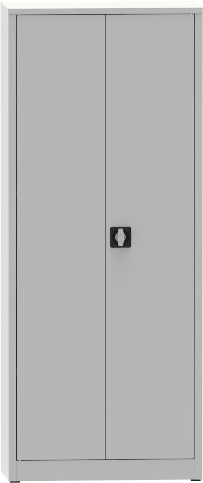 Two-door metal welded cabinet, width 800, height 1800, depth 600 mm, 4 adjustable shelves. Body color RAL 7035 light gray, doors RAL 7035 light gray and RAL 5012 blue.