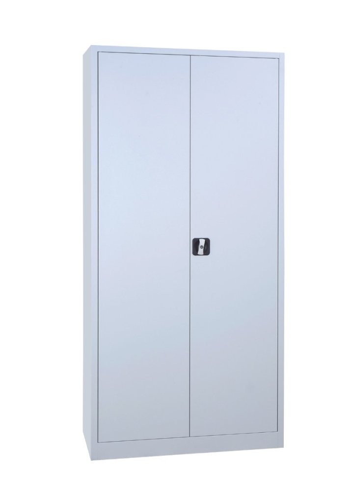 Two-door dismantled cabinet made of sheet steel 0.6 mm thick. Height 1850 x width 900 x depth 390 mm, 4 x shelves, cylinder lock with two keys. Surface treatment with gray powder paint RAL 7047.