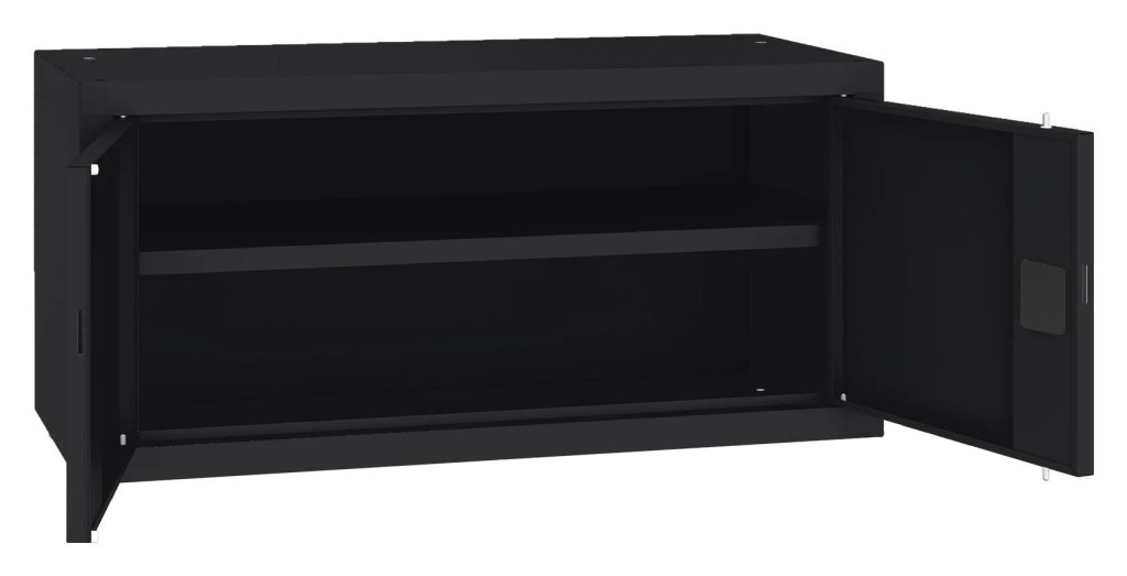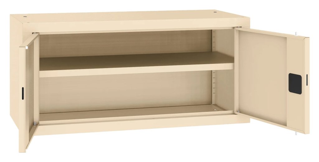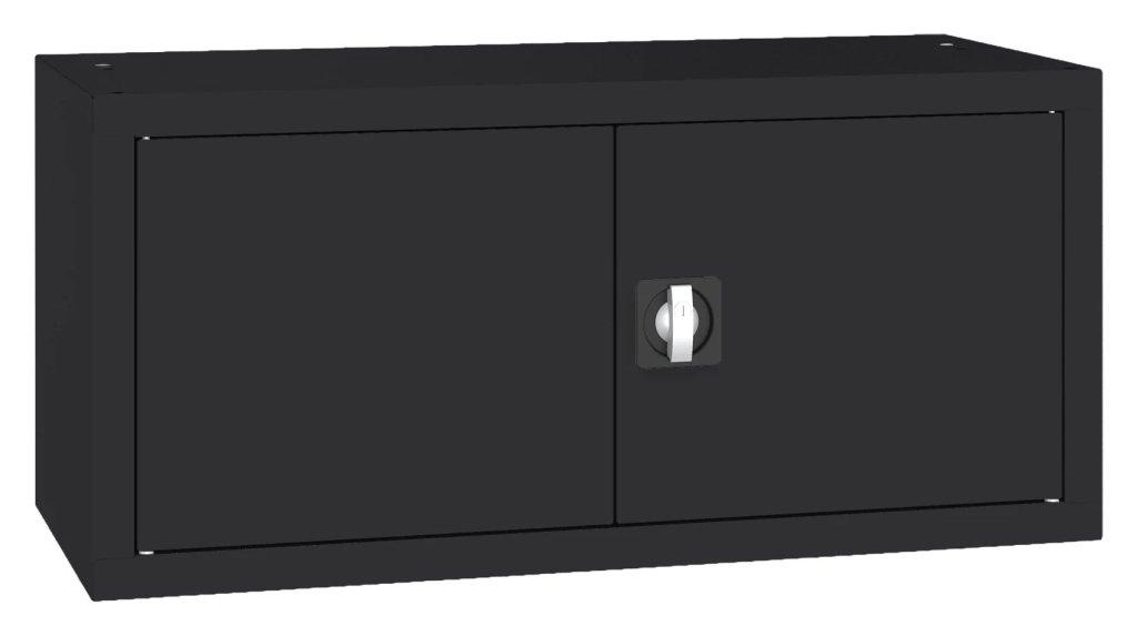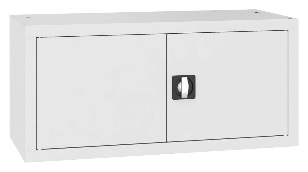 Two-door metal cabinet with one shelf, suitable as an extension. Width 600 / 800 / 1000 / 1200 mm (see product variants), height 810, depth 435 mm. Two-point wheelbase lock, various colors.