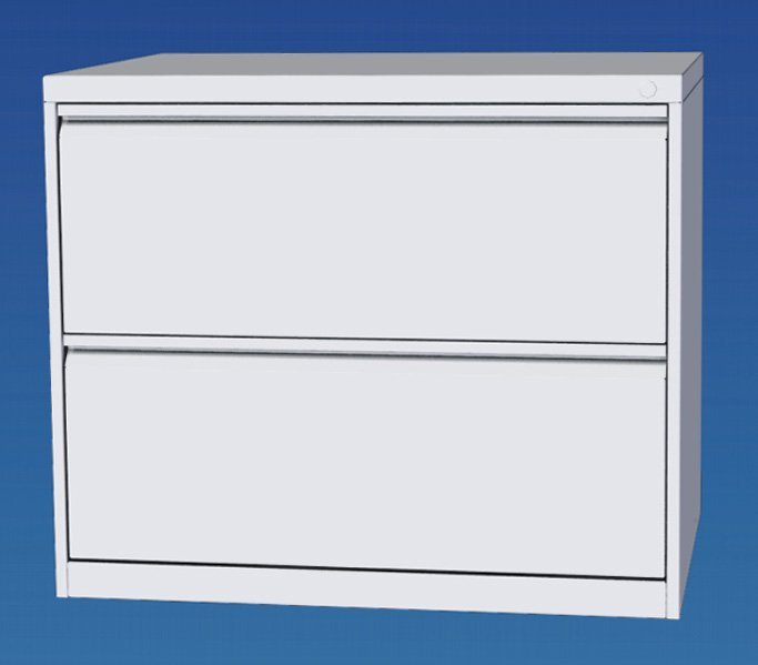 Double-row, two-drawer filing cabinet for two rows of A4 format next to each other in each drawer. Height 704 x width 840 x depth 623 mm. Full extension of the drawers on the ball guide. Other colors on request.
