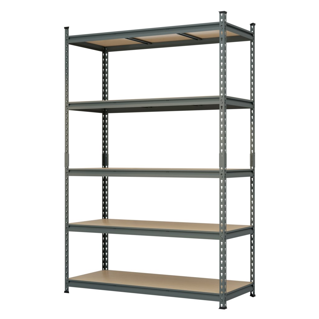 Universal all-metal screwless shelf suitable for workshops, warehouses, offices, garages or archives. Made of high-quality steel sheet, surface treated with gray powder paint. 5x adjustable shelves with reinforcement. Shelf load capacity 150 kg. Shelf dimensions (h x w x d) 1830 x 1200 x 500 mm. Supplied disassembled.