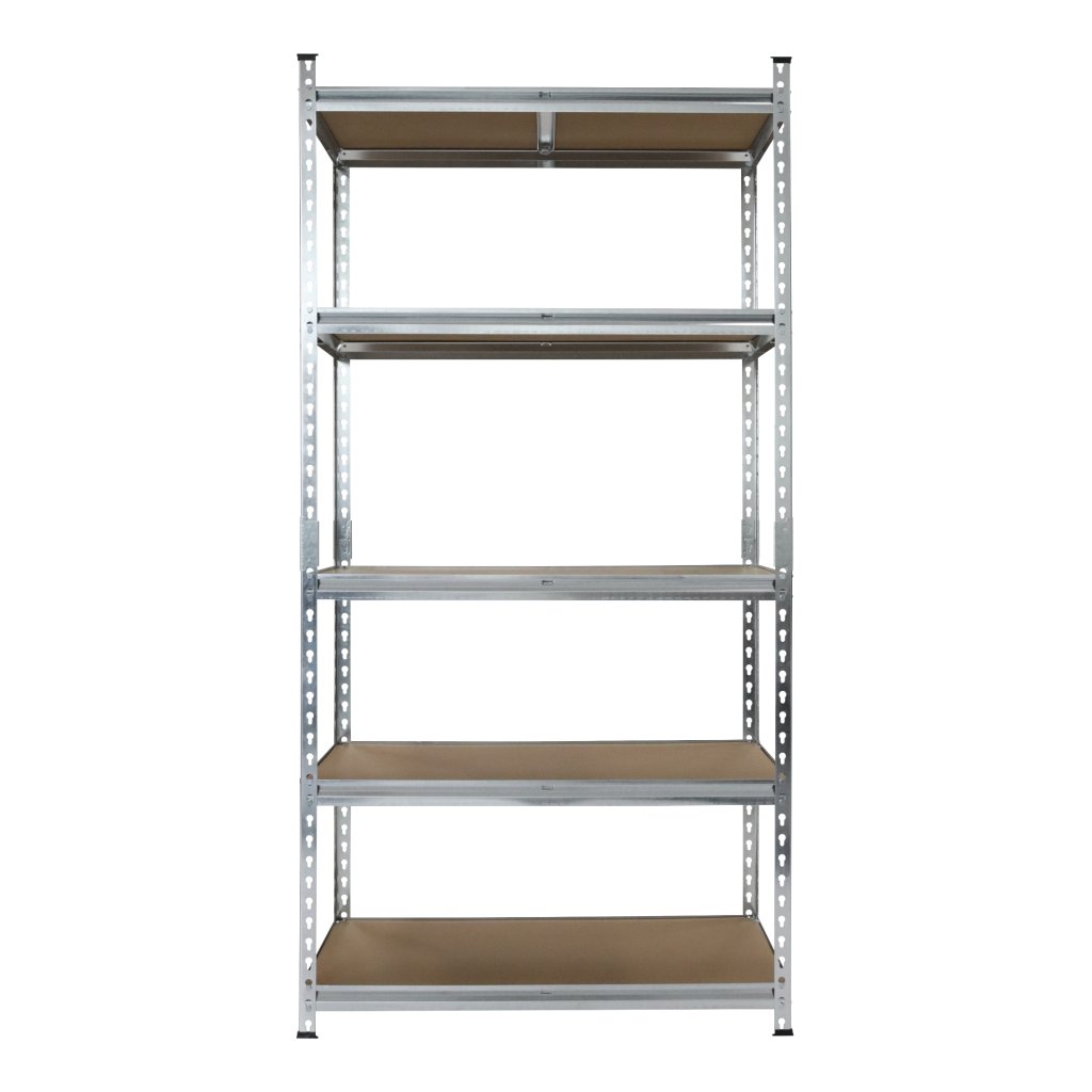 Universal metal screwless shelf suitable for workshops, warehouses, offices, garages or archives. Made of high-quality steel sheet with a galvanized surface finish for increased corrosion resistance. 5x adjustable MDF shelves with reinforcement. Shelf load capacity 175 kg. Shelf dimensions (h x w x d) 1830 x 900 x 400 mm. Supplied disassembled.