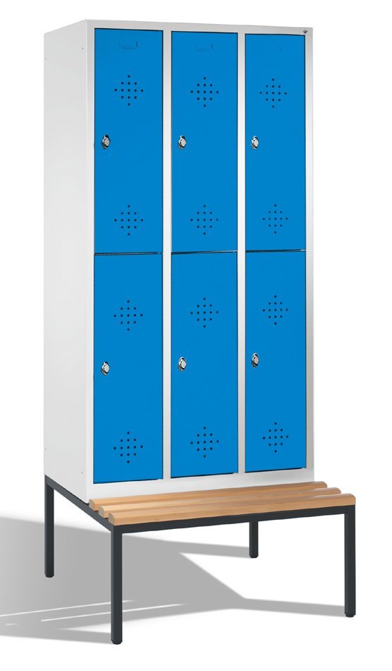 Six-door metal wardrobe (half) on a bench - height 2090, width 900, depth 500/815 mm.