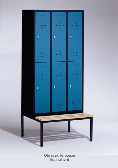 Eight-door metal wardrobe (half) on a bench, width 1190, height 2090, depth 500/810 mm.
