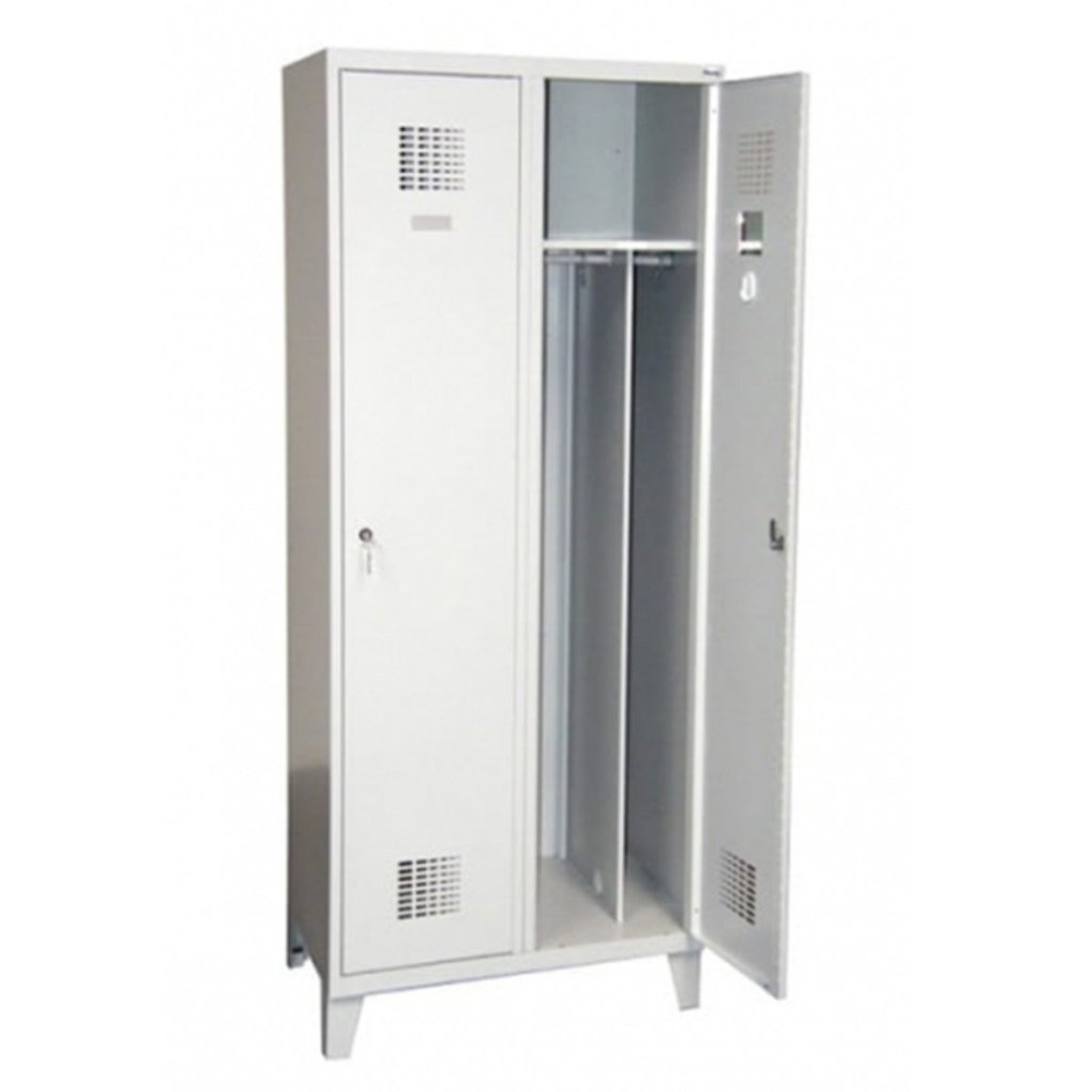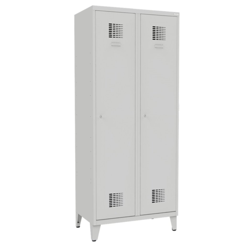 Two-door wardrobe on legs with welded construction and modern ventilation system design. Height 1940 x width 800 x depth 500 mm. full description and parameters