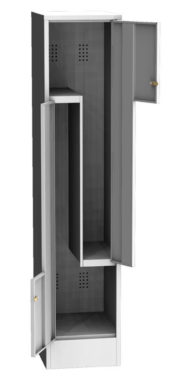 Four-door metal wardrobe divided, width 600, height 1850, depth 500 mm. Body color RAL 7035 light gray.
