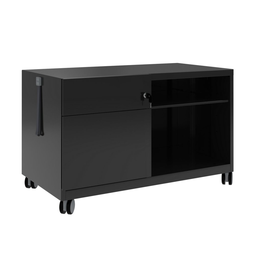 Mobile table container Caddy from the Be by Bisley collection in the left design. Height 563 x width 900 x depth 490 mm, the full description and parameters