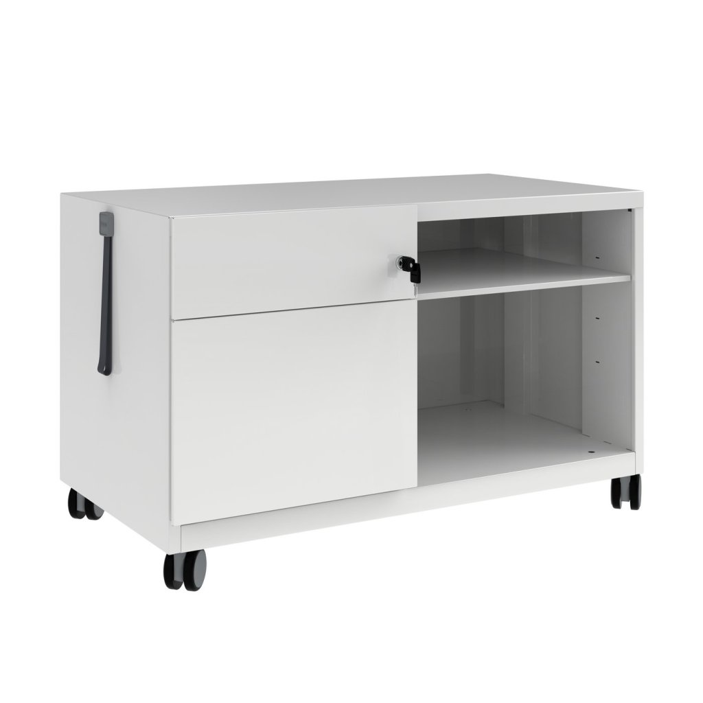 Mobile table container Caddy from the Be by Bisley collection in the left design. Height 563 x width 900 x depth 490 mm, the container is standard on wheels.