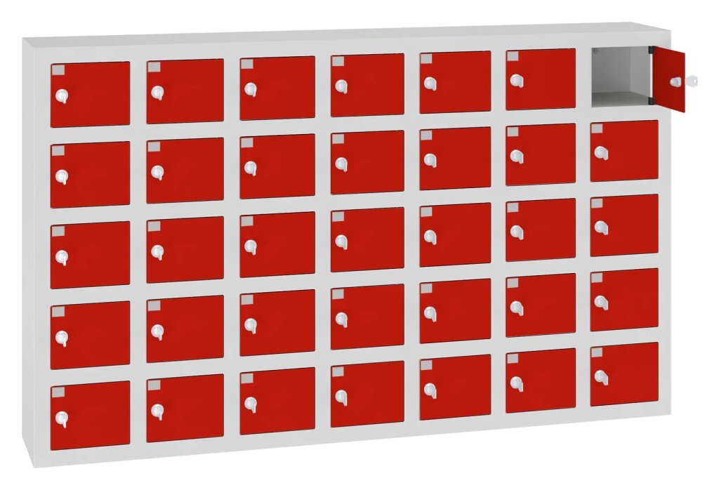 The metal cabinet with boxes is intended for safe storage of mobile phones. Suitable for places where it is not allowed to carry a mobile phone, such as schools, production halls or libraries. 16 color shades to choose from included in the price without extra charge. Different types of locking.