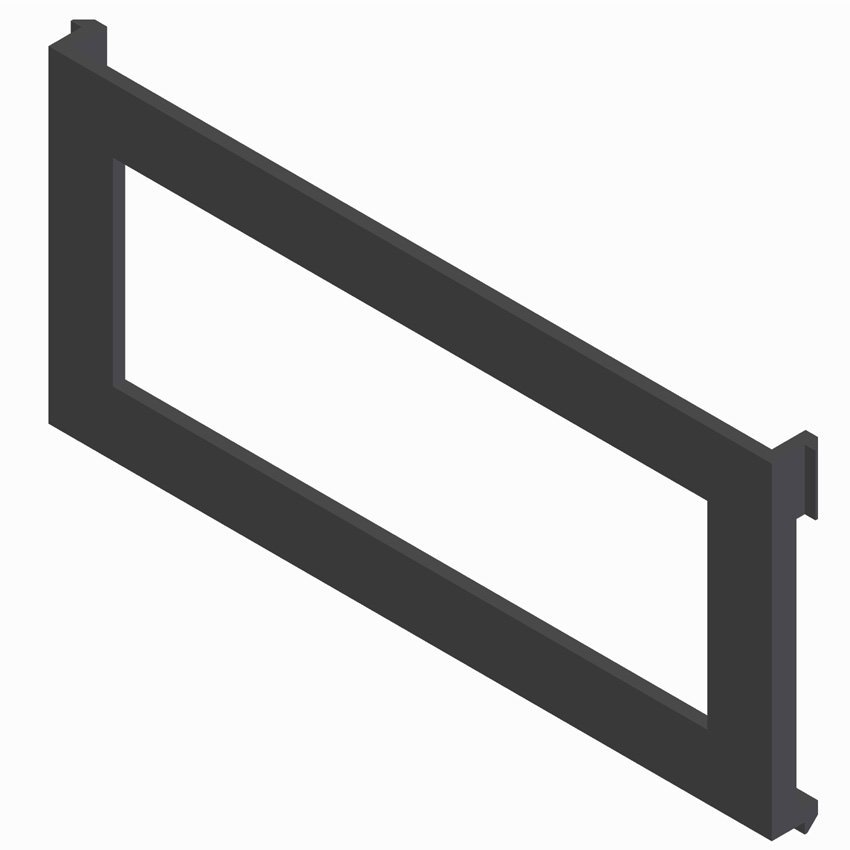 Plastic frame for inserting a paper name tag measuring 85 x 38 mm. It is hung in the door ventilation holes.