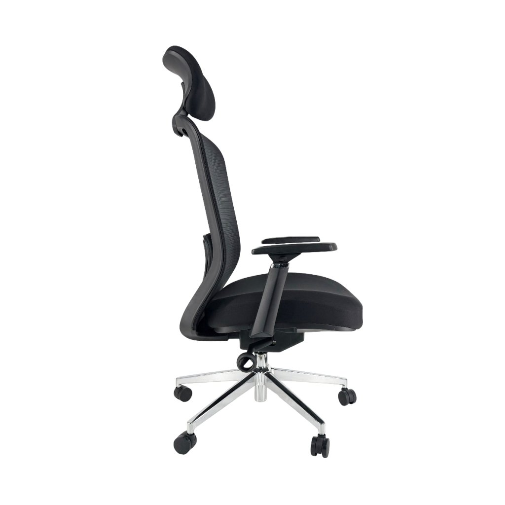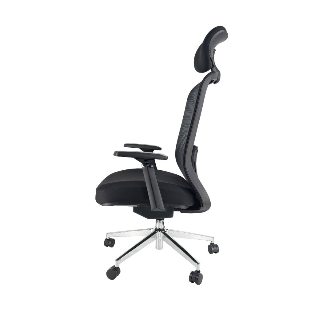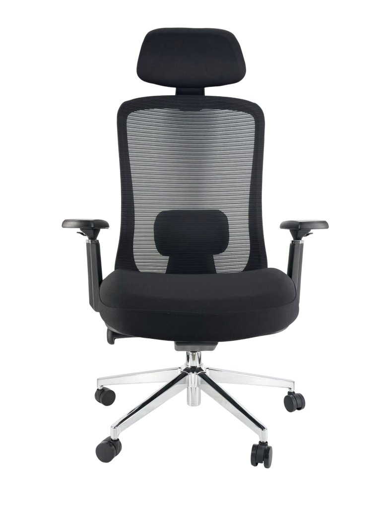 The ergonomic office chair offers a high level of seating comfort and extensive options for individual adjustment. Thanks to the height‑adjustable lumbar support, adjustable armrests and headrest, it easily adapts to any user. The Synchro mechanism supports dynamic sitting, while the fixed mesh backrest ensures optimal breathability throughout the day. Robust construction with a load capacity of 200 kg and a black chrome base ensures long service life and stability. The wide and comfortable seat provides plenty of space even during extended sitting.