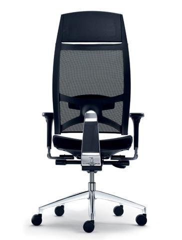 Lyra click office chair, high backrest, SY synchronous mechanism, UP-DOWN backrest height adjustment, gas piston, wheels, black nylon cross. Price without armrests.