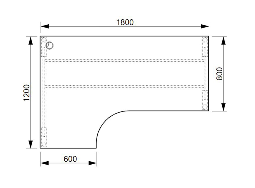 UNI office corner desk with dimensions 755 x 1800 x 1200 mm. The worktop is equipped with an ABS edge to help protect the tables from damage. The tables include a practical grommet that leads all the cables under the table, where they can be handled by practical holders.