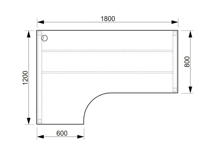 UNI office corner desk with dimensions 755 x 1800 x 1200 mm. The worktop is equipped with an ABS edge to help protect the tables from damage. The tables include a practical grommet that leads all the cables under the table, where they can be handled by practical holders.