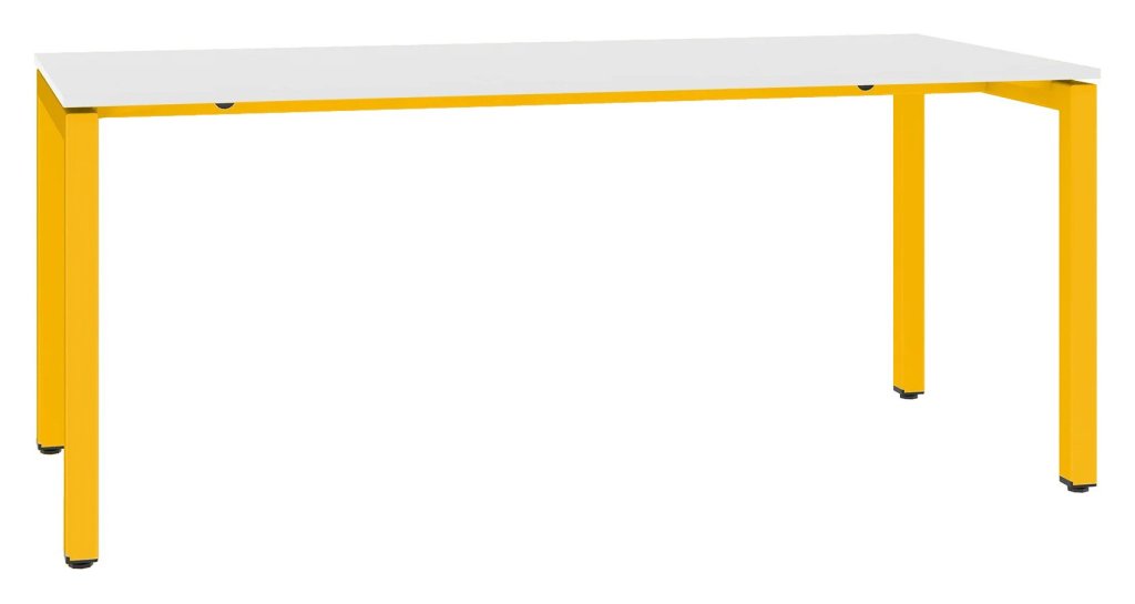 Design table suitable for offices, meeting rooms and open spaces. Construction square profiles 50 x 50 mm, color to choose from RAL shades. Laminate boards with a thickness of 18 mm with an edge, the color of the board can be chosen. The legs have rectification feet allowing for height adjustment. Height 745 - 770 mm, width 1800 mm, depth 800 mm.