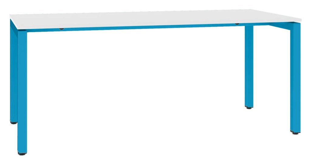 Design table suitable for offices, meeting rooms and open spaces. Construction square profiles 50 x 50 mm, color to choose from RAL shades. Laminate boards with a thickness of 18 mm with an edge, the color of the board can be chosen. The legs have rectification feet allowing for height adjustment. Height 745 - 770 mm, width 1800 mm, depth 600 mm.