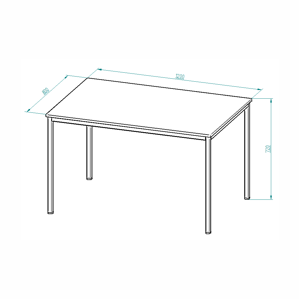 Office desk on a metal base, board size 800 x 800 mm, construction and board color RAL 7035. The work surface is made of double-sided laminated chipboard (thickness 25 mm) lined with ABS edge. Tabletop height 720 mm.