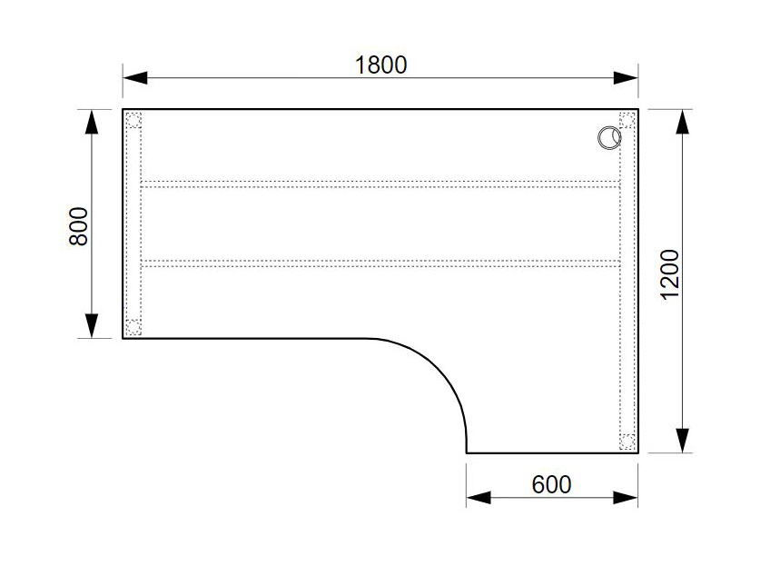 UNI office corner desk with dimensions 755 x 1800 x 1200 mm. The worktop is equipped with an ABS edge to help protect the tables from damage. The tables include a practical grommet that leads all the cables under the table, where they can be handled by practical holders.