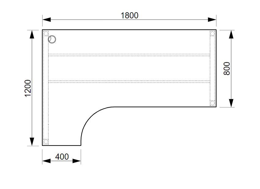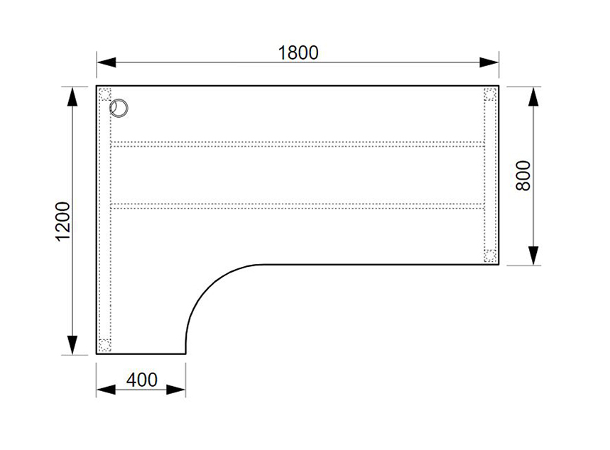 UNI office corner desk with dimensions 755 x 1800 x 1200 mm. The worktop is equipped with an ABS edge to help protect the tables from damage. The tables include a practical grommet that leads all the cables under the table, where they can be handled by practical holders.