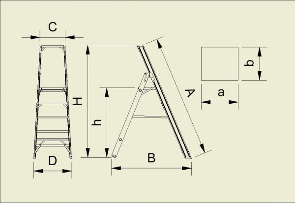 Eurostyle aluminum one-sided steps, number of treads including platform 1x3, dimensions of platform 264 x 262 mm, maximum height of platform 0.59 m, width of steps 412 mm. Load capacity 150 kg. Stairs 913, 914 - in stock.