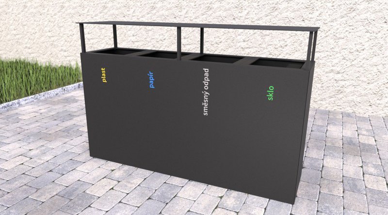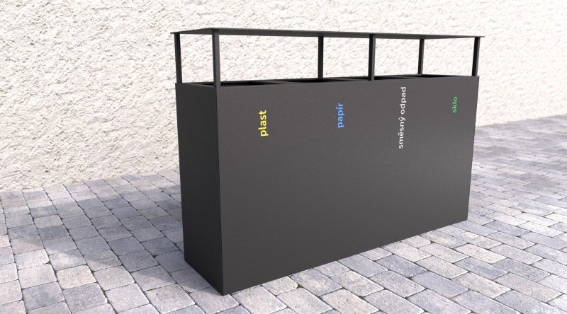 Outdoor trash can for sorted waste. Highly resistant to vandalism and weather. The wooden slats of the basket are treated 3 times with a glaze that protects the outdoor furniture from UV radiation and weather effects. Surface treatment with powder paint or hot-dip zinc. Volume 3x 65 l. Dimensions 790 x 970 x 400 mm.