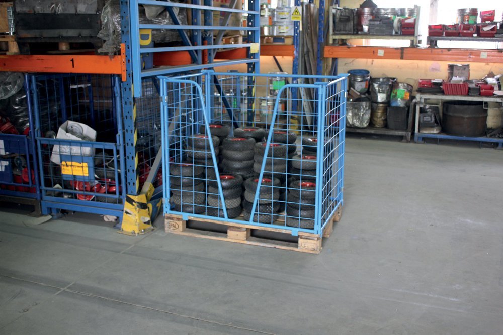 Construction from welded steel pipes. Surface treatment painted powder color RAL 5010 blue. Wall panels made of wire mesh 100 × 100 mm. One longer side with cutout. When fixed to the EUR-pallet, a storage space is created for storage. Barrier height 1600 mm, for pallets of size 1200 x 800 mm. Stackability - 3 pieces, load capacity 750 kg. The palette is not included in the delivery.