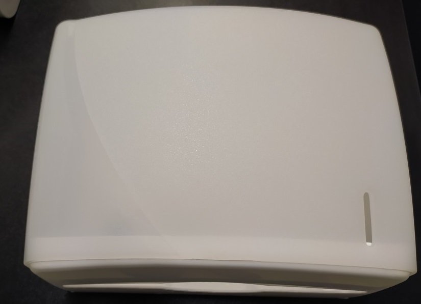 A tray for folded towels with a practical sight to check the filling in white. full description and parameters