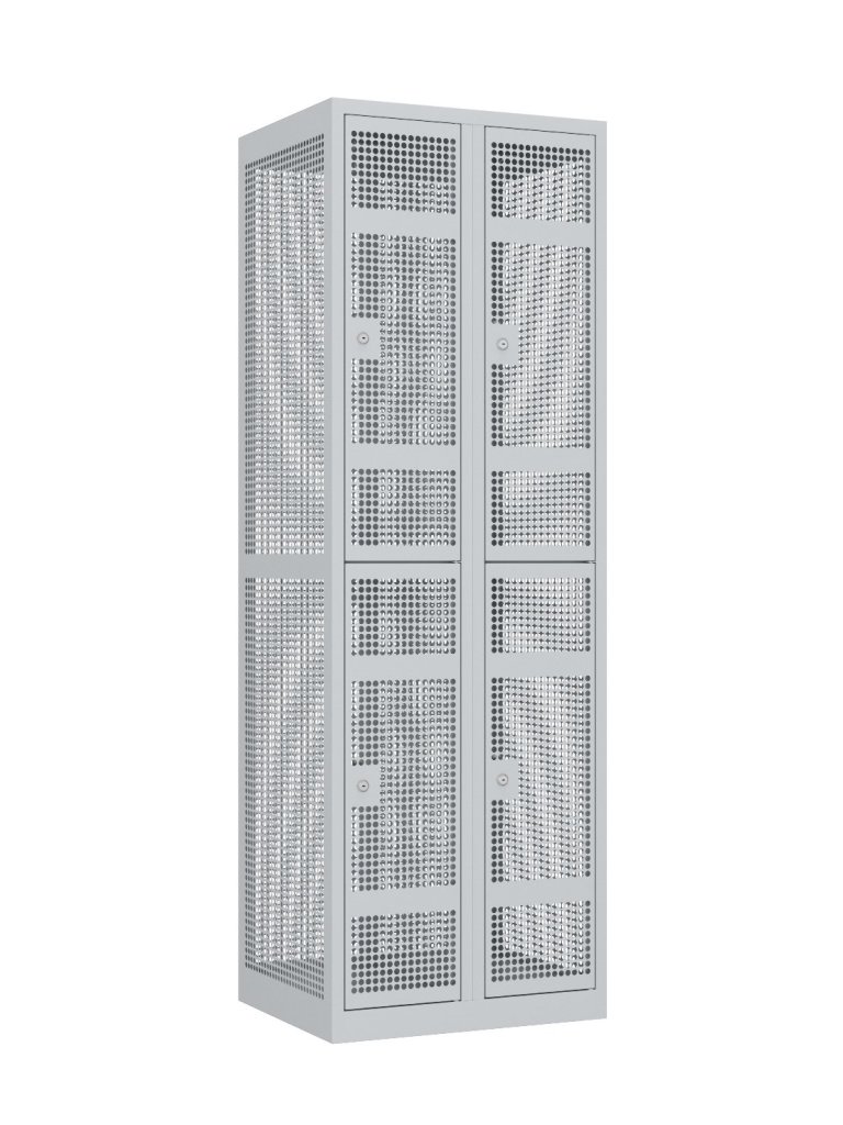 Eight-door metal wardrobe with welded construction and modern ventilation system design. Height 1800 x width 600 x depth 500 mm. Self-adhesive name tag on the door. 16 color shades to choose from included in the price without extra charge. Different types of locking.