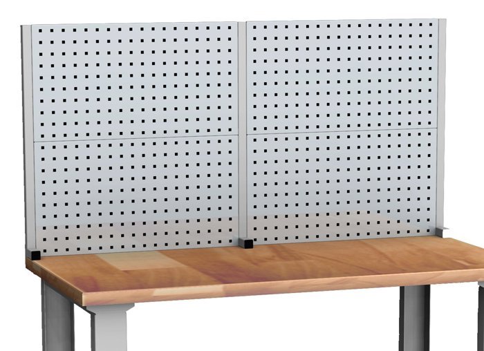 Perforated panel for hanging tool holders on workshop tables and 1500 mm wide boards. Panel height 760, width 1500, depth 95 mm.