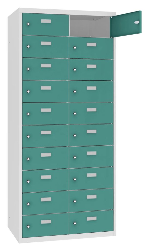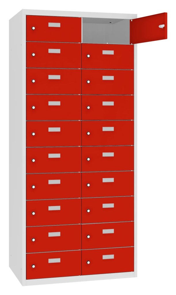 Lockers for storing personal belongings of employees, such as food, mobile phones, documents and other small items. Ideal for kitchens or social rooms. Height 1800 x width 800 x depth 500 mm. 16 color shades to choose from included in the price without extra charge.
