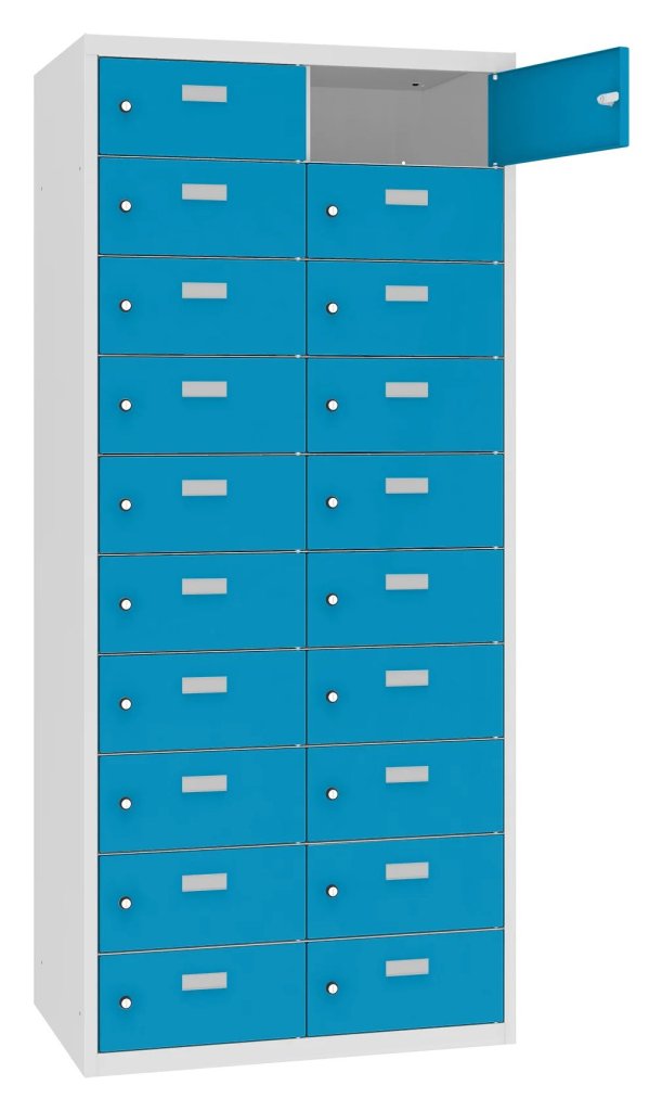 Lockers for storing personal belongings of employees, such as food, mobile phones, documents and other small items. Ideal for kitchens or social rooms. Height 1800 x width 800 x depth 300 mm. 16 color shades to choose from included in the price without extra charge.