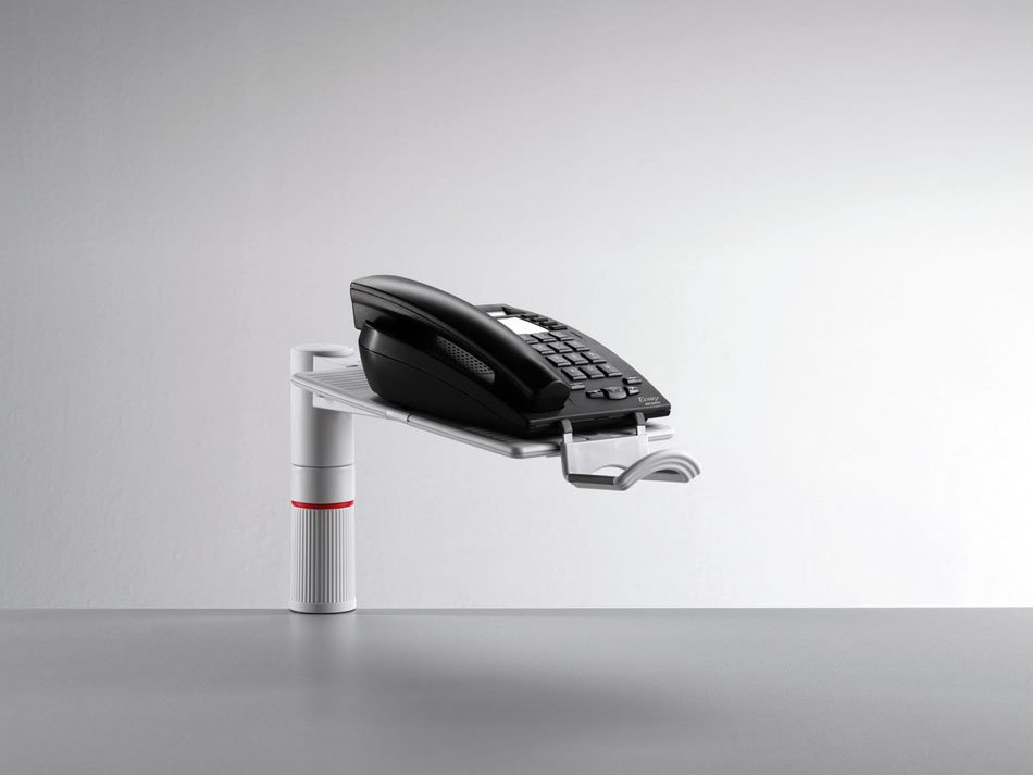 A small phone stand with minimal space requirements. Universal holder for the edge of a table top with a thickness of 18-74 mm. Load capacity 6 kg. Total height 215 mm, board size 170 x 250 mm. Warranty 2 years.