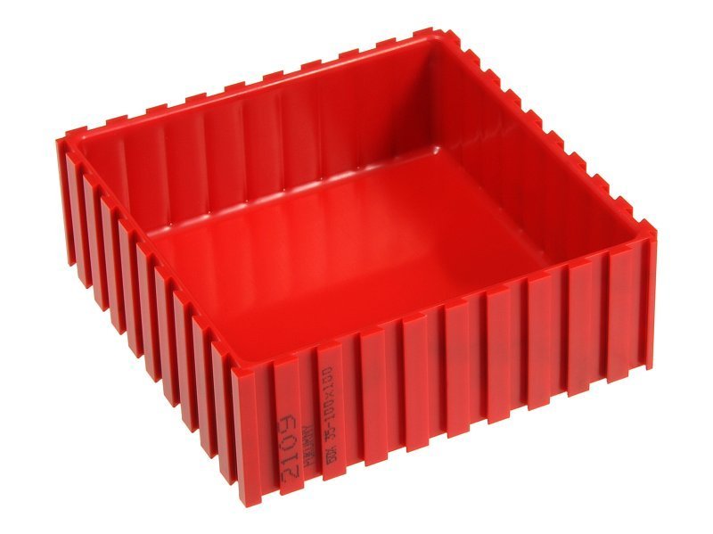The box is used to organize storage space in drawers, on shelves and on work surfaces. The individual boxes can be connected as a kit using dovetail joints into any assembly. They can be combined with each other, but also with boxes. To store sensitive devices or components, you can put a lining on the bottom of the box. Dimension 35 x 602 x 102 mm. Color red RAL 3020.