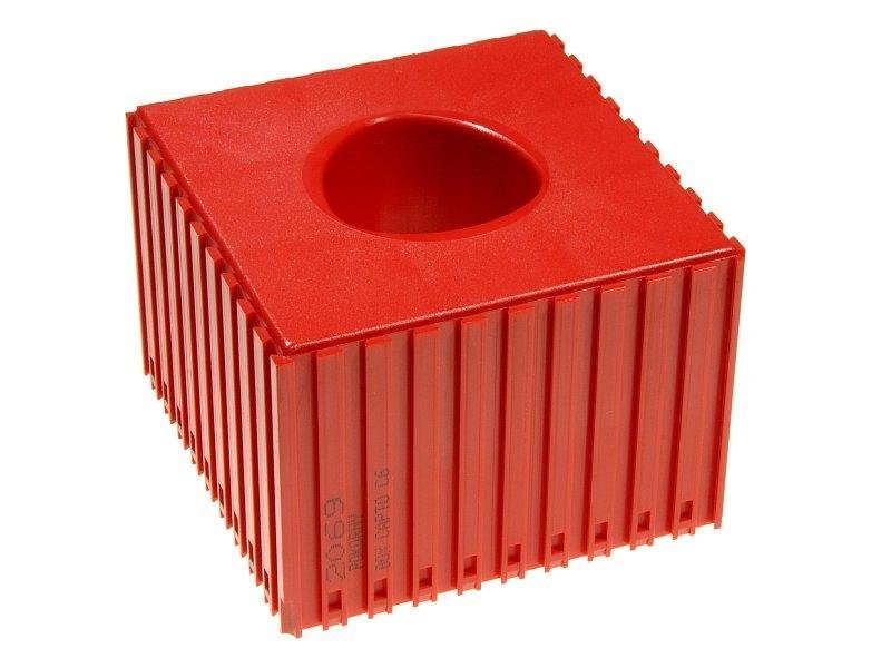The box is designed to store drill bits with diameters of 1-4.9 mm. Gradation of individual hole diameters makes it easier and faster to find and reinsert the drill into its place. Cavity depth 12–20 mm, color red RAL 3020.