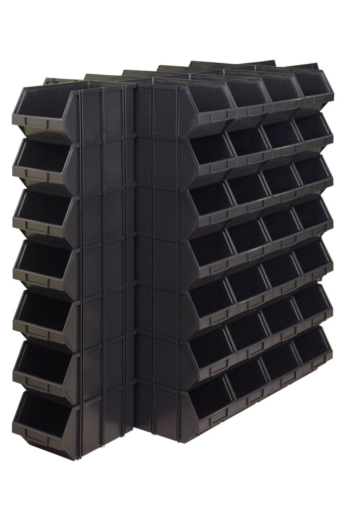 Plastic container Modulbox 4.1, height 190, width 310, depth 490 mm. The boxes fit together. Color black.