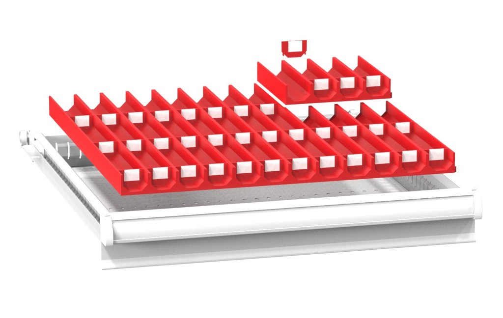 Metal drawer dividers, 12 fields, for ZA drawers (inner drawer dimensions 459 x 459 mm). For drawer front height 75 - 300 mm.