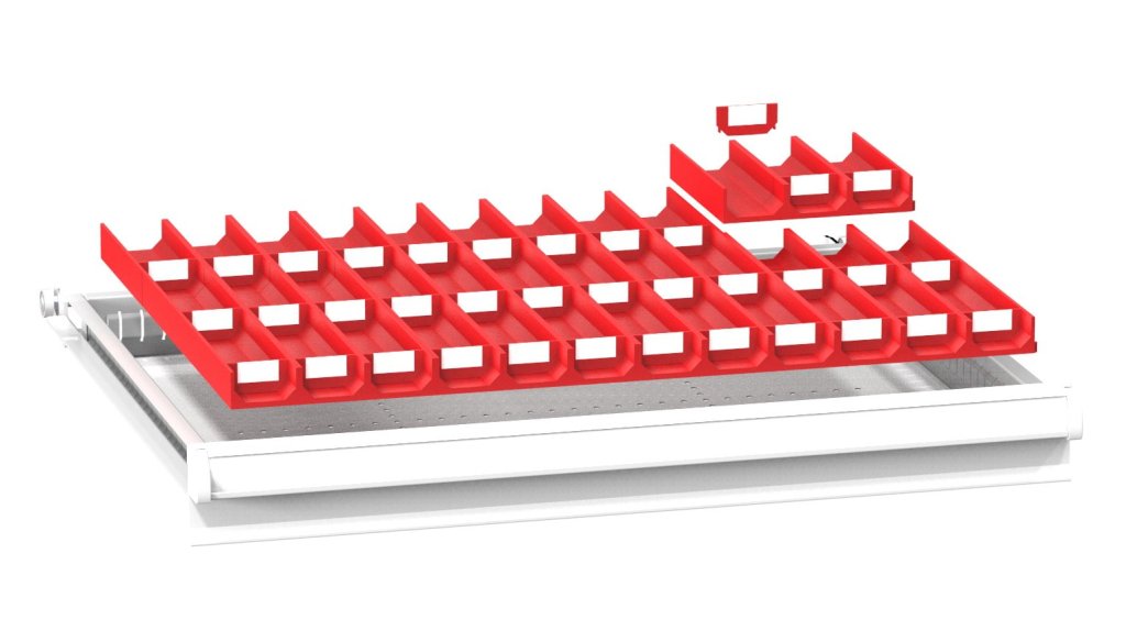 Plastic drawer dividers of ZD series cabinets, 12x four-part channel, channel width 33 mm, 24x partitions, weight 1.5 kg.