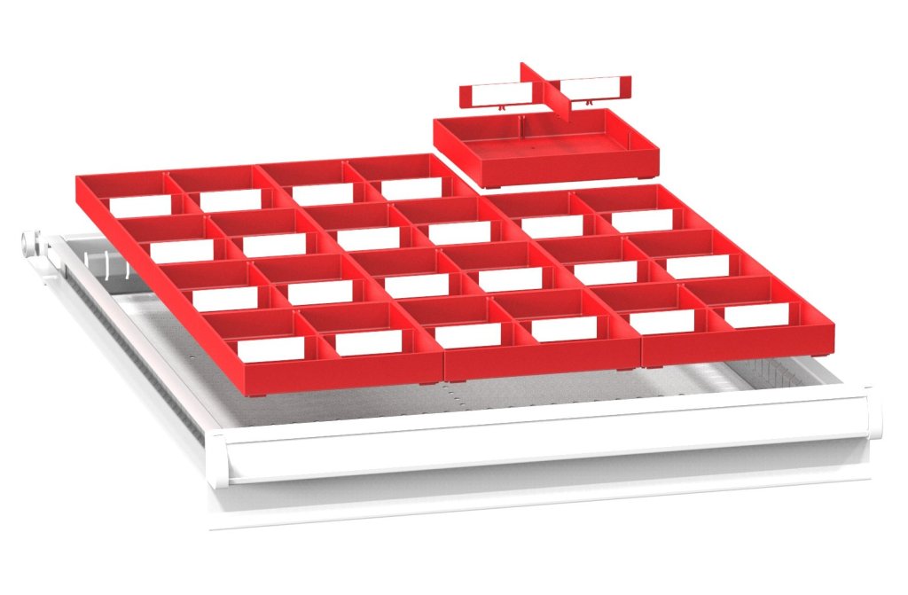 Metal drawer dividers, 12 fields, for ZE drawers (inner drawer dimensions 459 x 612 mm). For drawer front height 75 - 300 mm.