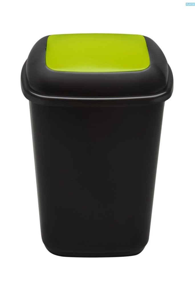 Modern plastic trash can with a volume of 45 l made of black plastic for sorted waste with a green flap in the lid. The lid with spring is removable. The trash can is marked with a sticker (can be peeled off). Resale of stock.